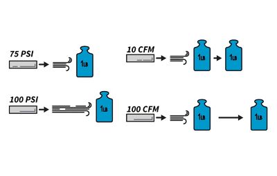 归根结底,当您想要为特定应用提供充足的压缩空气时,务必要考虑在特定压力 (PSI) 下所需的压缩空气流量 (CFM),以确保过程能够正常进行。