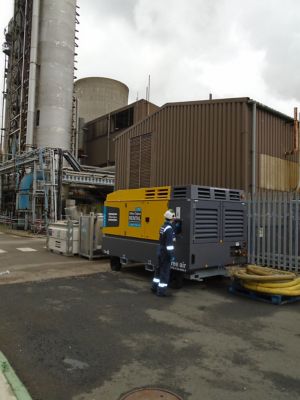 比林汉姆工厂之前租用的 PTS 1600 是一款 100% 无油柴油驱动压缩机。但验证结果表明,该设备的产气量过高,与本次的应用需求不匹配。这一次该厂所需的压缩空气流量约为 500 CFM,规格较小的 PTS 800 会非常适合。